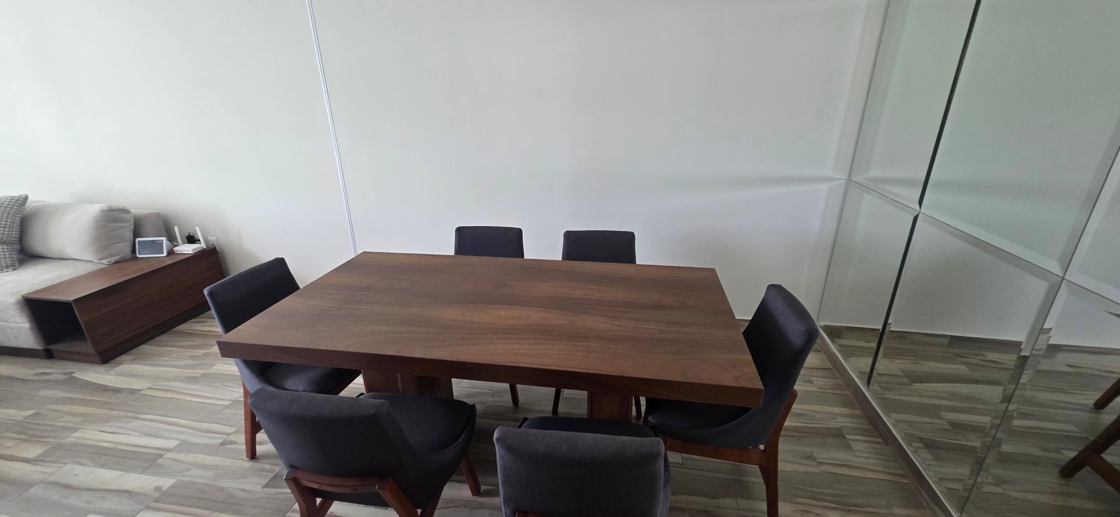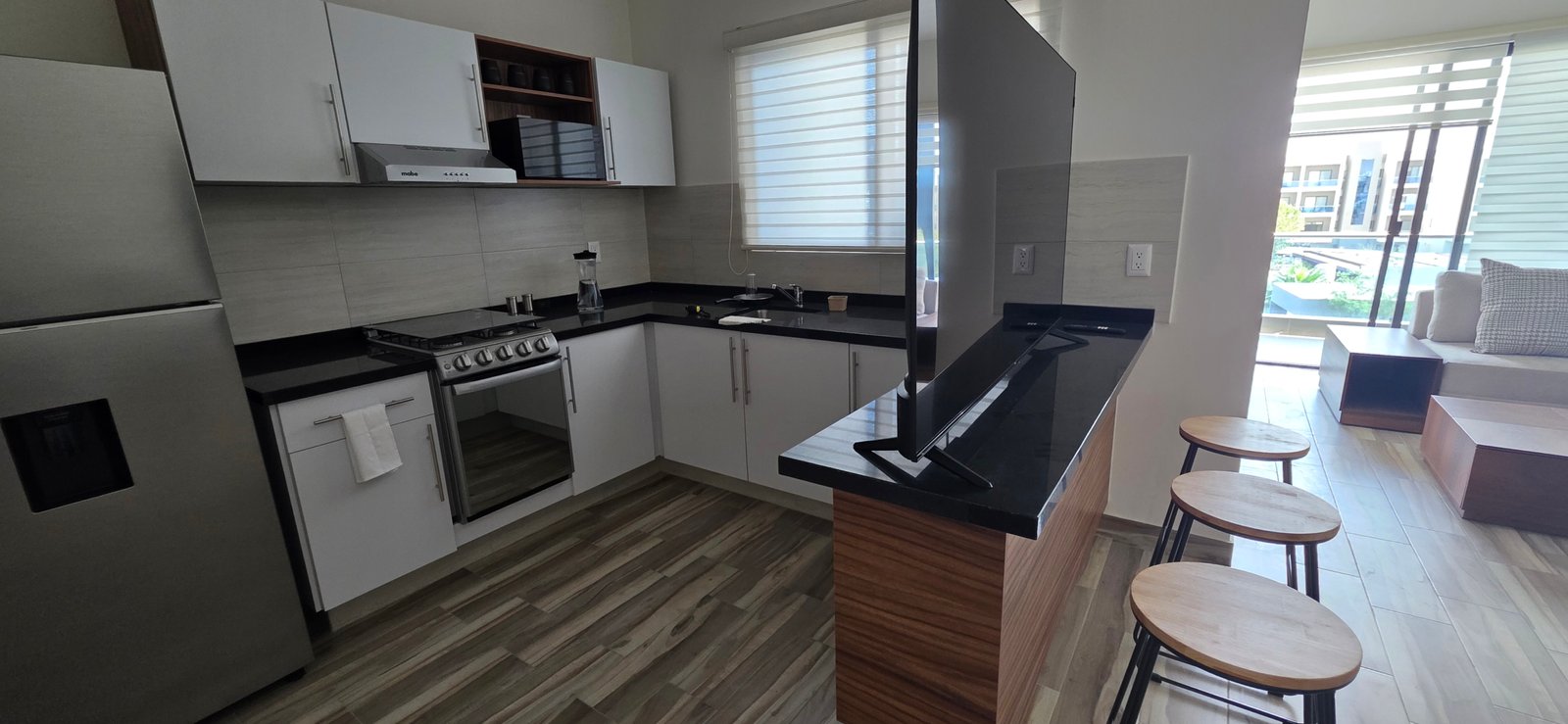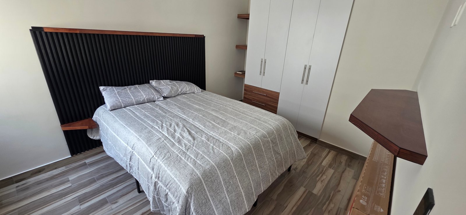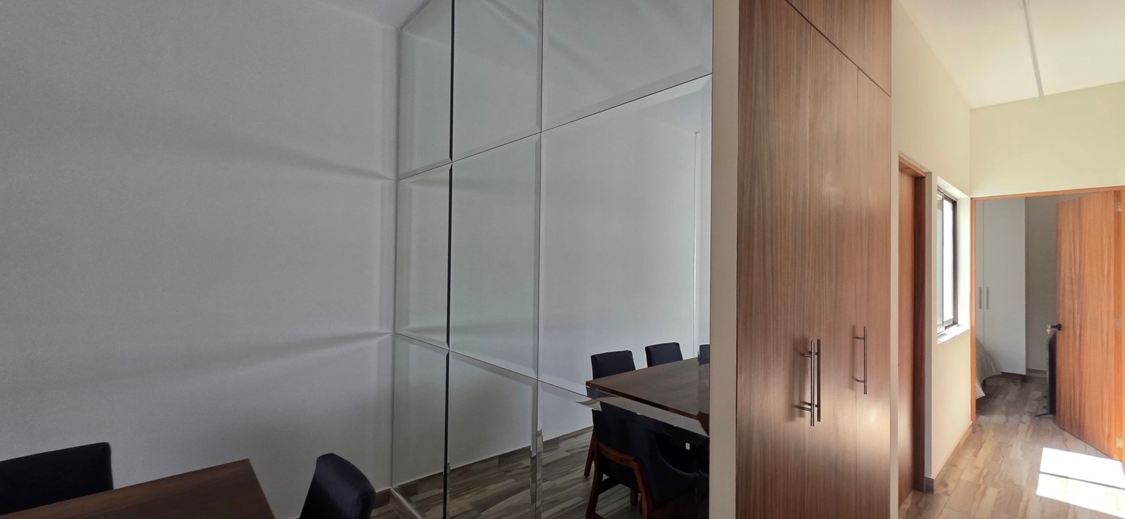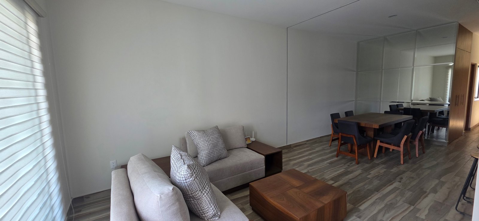 El departamento ha sido diseñado pensando en la funcionalidad, iluminación natural y amplitud visual. Elementos decorativos como espejos estratégicamente colocados en los espacios interiores aportan una mayor sensación de profundidad, elegancia y modernidad.